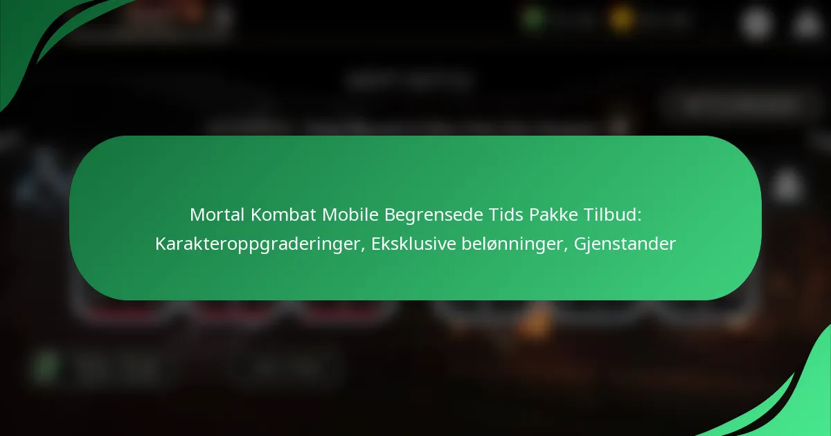 Mortal Kombat Mobile begrensede tidspakker tilbyr spillerne eksklusive kampanjetilbud som er tilgjengelige i en kort periode. Disse pakkene inkluderer vanligvis unike karakterer, skins og verdifull in...
